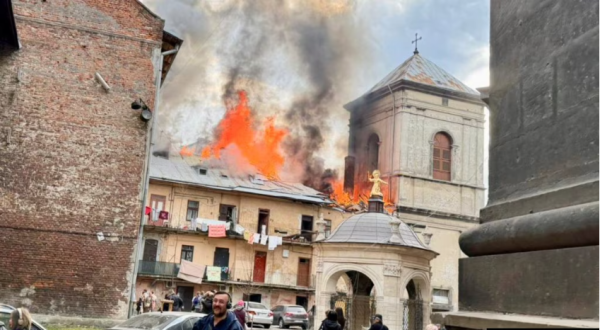 Российские дроны атаковали Львов во вторник днем, один беспилотник попал в здание около церкви на Соборной площади в центре города.