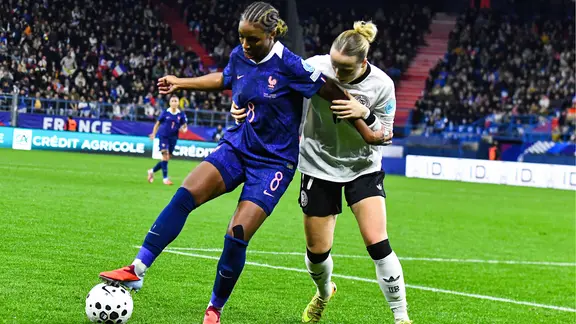 Doch auch die Mannschaft von Trainer Laurent Bonadei zeigte sich vom Gegentreffer wenig beeindruckt und schaltete ihrerseits sofort wieder auf "Attacke". DFB-Keeperin Stina Johannes stand bis zur Pause mehrfach im Mittelpunkt: Zunächst rettete die Keeperin des VfL Wolfsburg außerhalb des Sechzehners in höchster Not gegen Sakina Karchaoui (22.), dann entschärfte sie Malards Schuss aus zehn Metern (32.) und parierte schließlich auch den Versuch von Delphine Cascarino aus halbrechter Position (43.). Umkämpftes Spiel in Caen zwischen Frankreich und Deutschland.Chancenlos war sie gegen den Schuss der französischen Angreiferin in der 37. Minute gewesen. Das vermeintliche 2:1 des Bonadei-Teams wurde wegen einer Abseitsstellung Cascarinos bei Bachas Steilpass aber aberkannt. So ging es nach einer rasanten ersten Hälfte mit 1:1 in die Kabinen.