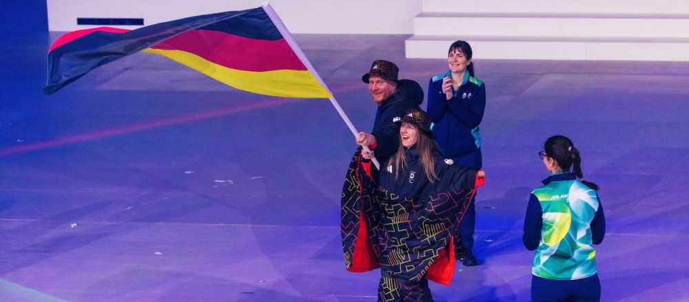 Anders als noch bei der Eröffnungsfeier, als die deutsche Delegation der Zeremonie aus Solidarität mit der Ukraine fernblieb, war Team D am Sonntag in Cortina mit einer Gruppe von Athleten vertreten. Ski-Alpin-Fahrerin Andrea Rothfuss und Snowboarder Christian Schmiedt trugen die deutsche Fahne.