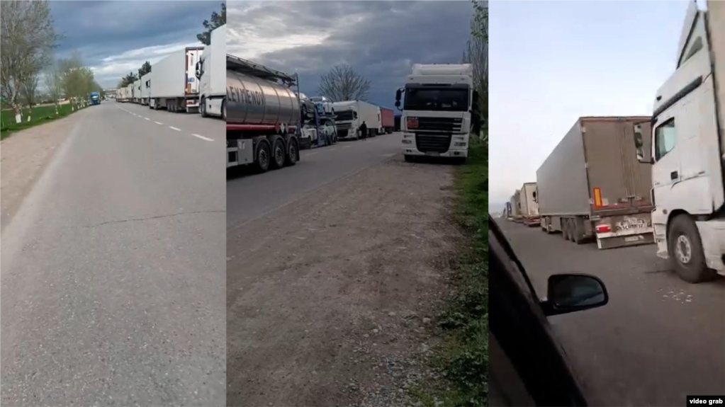 Ин мошинҳо, ки аз кишварҳои дигар, аз ҷумла, Қазоқистону Эрон тавассути Узбекистон ба Тоҷикистон молу маводи ғизоӣ ворид мекунанд, дар гузаргоҳи гумрукии «Дӯстӣ» миёни шаҳри Турсунзодаи Тоҷикистон ва Сариосиёи вилояти Сурхандарёи Узбекистон барои дарёфти иҷозаи убури марз навбат истодаанд.