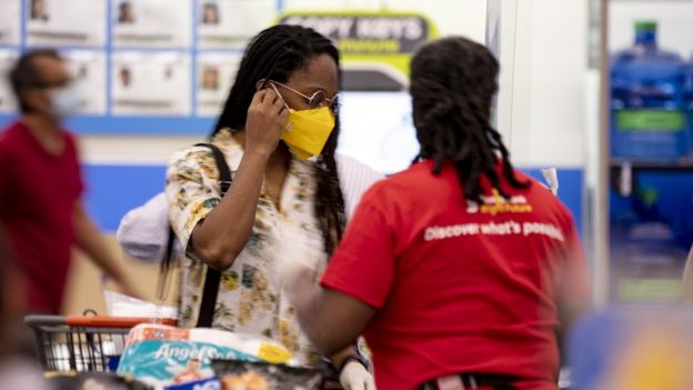 50та штатнинг ярмидан кўпида ниқоб тақиш мажбурий қилиб белгиланган. Ушбу қоида аввалига ҳукумат томонидан жамоат жойлари ва бино ичида ниқоб кийиш таъкидланган Луизиана штатида кучга кирди. Штатда барлар ҳам ёпилган.