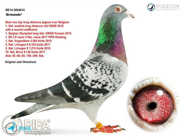 5 ёшли Армандо кабутар пойгалари тарихидаги энг яхшиларидан бири ҳисобланиб, ғалабалари учун кўплаб мукофотлар билан тақдирланган.